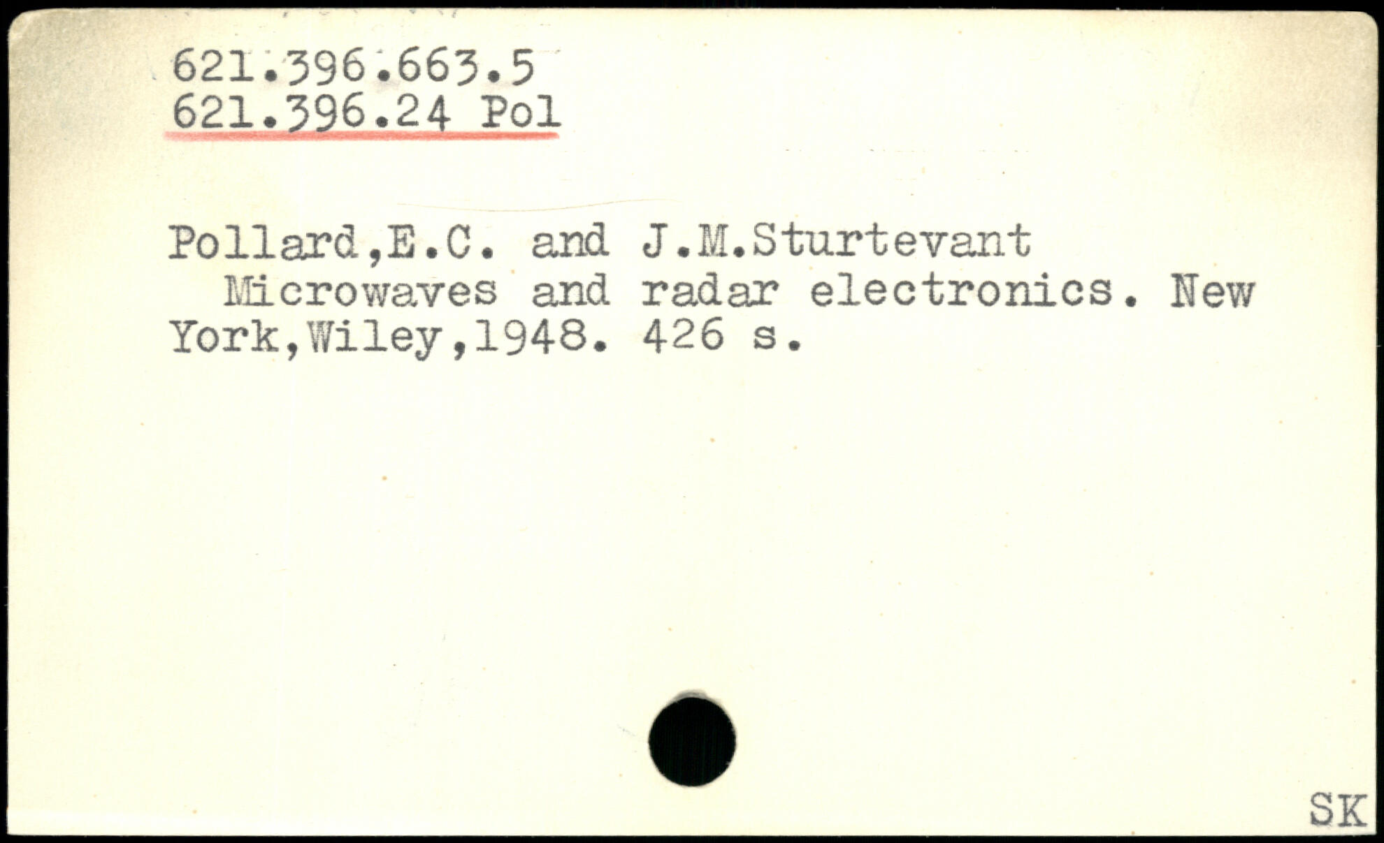 ''WtfHaMiHHHMBHHMWMMBMHnMiav Pollard,E.C. and J.M.Sturtevant Microwaves and radar electronics.