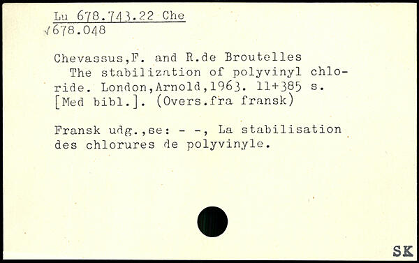 Chevassus,F. and R.de Broutelles The stabilization of polyvinyl chloride.