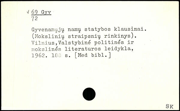 Gyvenamy.jy. nanryi statybos klausimai. (Mokslinip. straipsnii^ rinkinys). Vilnius,Valstybiné politinés ir mokslinés literaturos leidykla, 1962.
