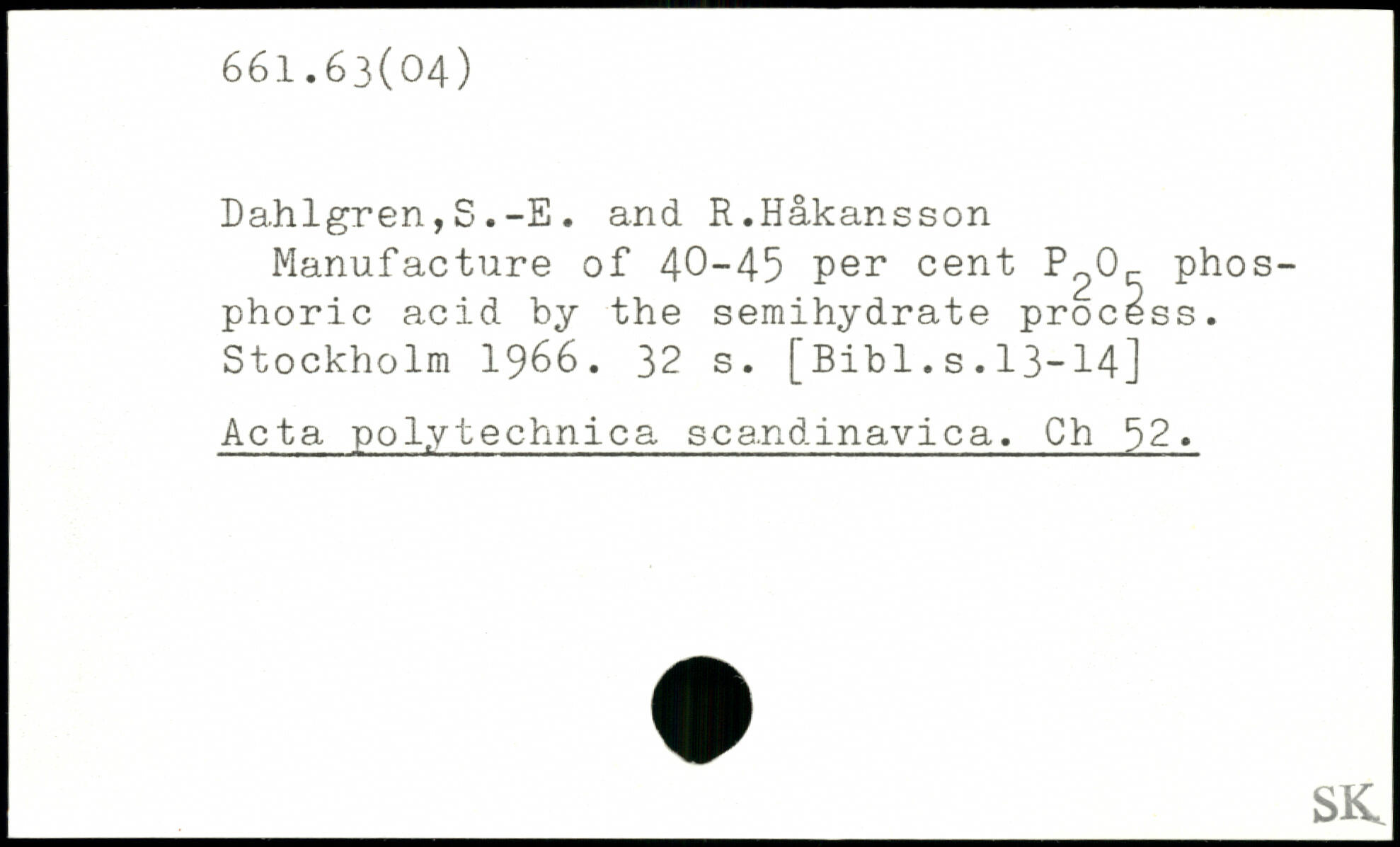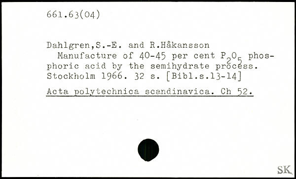 Manufacture of 40-45 per cent phos phoric acid by the semihydrate process.