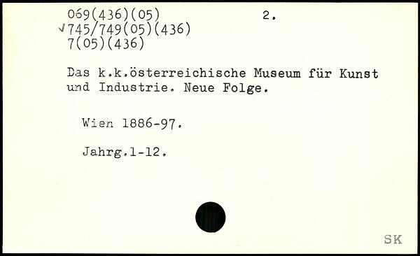 Das k,k.österreichische Museum für Kunst und Industrie. Neue Folge. Vien 1886-97. Jahrg,1-12.