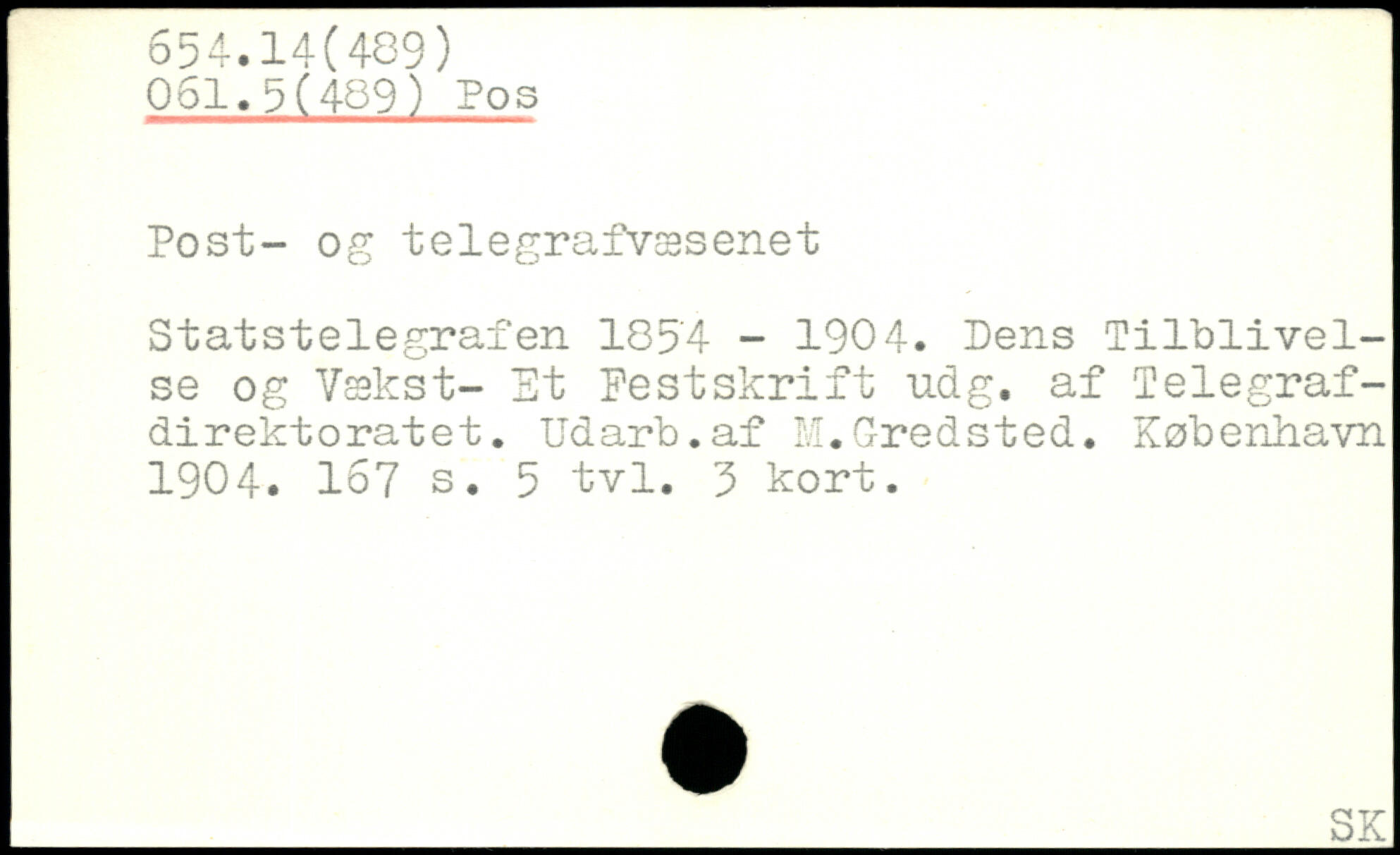 Post- og telegrafvæsenet Statstelegrafen 105‘4 - 1904. Dens Tilblivelse og Vækst- Et Festskrift udg. af Telegraf-direktoratet. Udarb.af M.Gredsted.