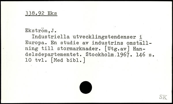 Industriella utvecklingstendenser i Europa. En studie av industrins omställning till stormarknader. [Utg.av] Handelsdepartementet. Stockholm.1967.