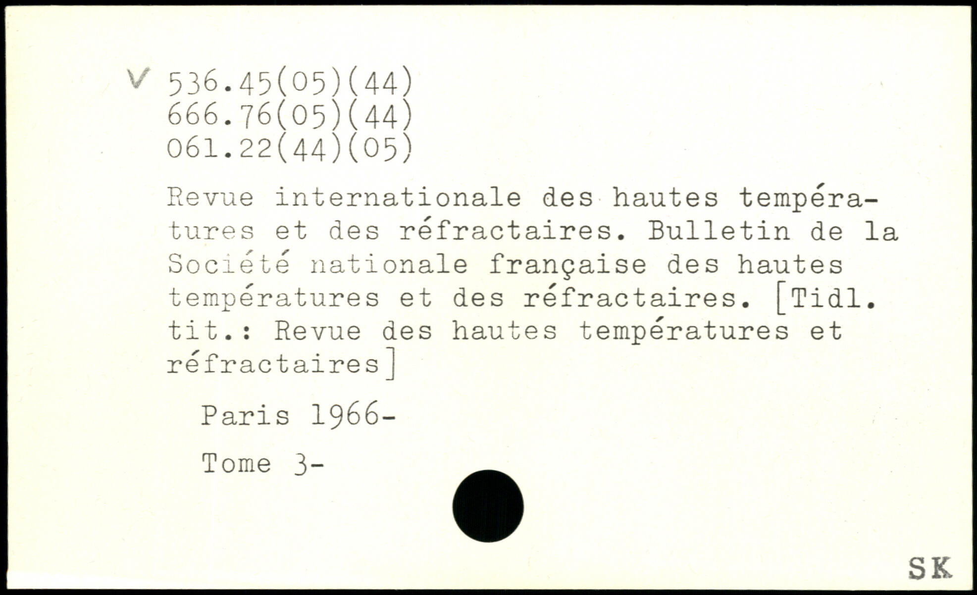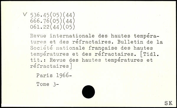 Revue internationale des hautes températures et des réfractaires. Bulletin de la Société nationale française des hautes températures et des réfractaires. [Tidl. tit.: Revue des hautes températures et réfractaires]