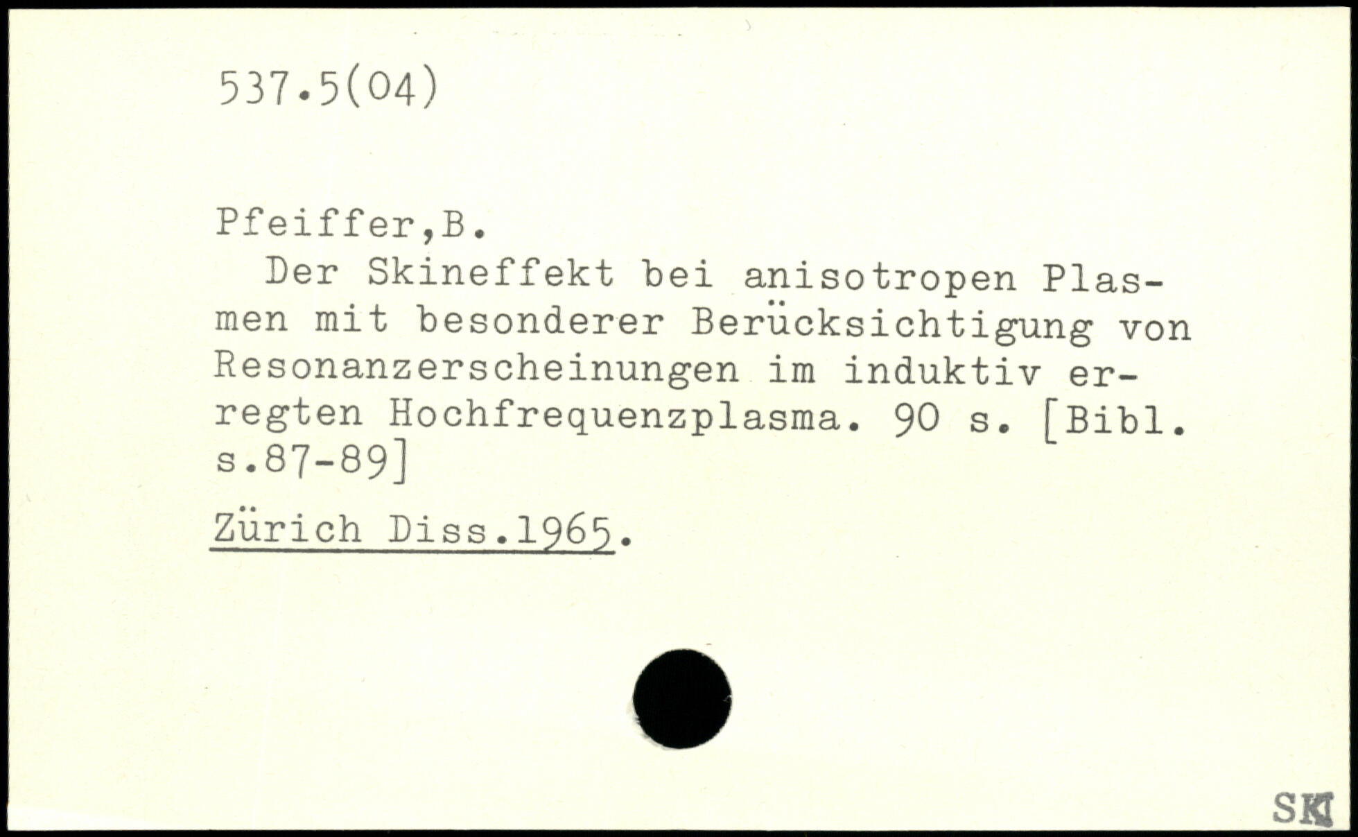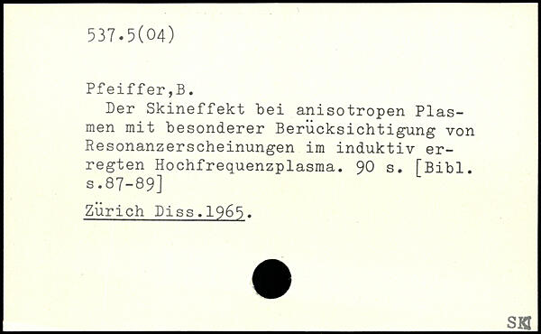 Der Skineffekt bei anisotropen Plasmen mit besonderer Berücksichtigung von Resonanzerscheinungen im induktiv erregten Hochfrequenzplasma.