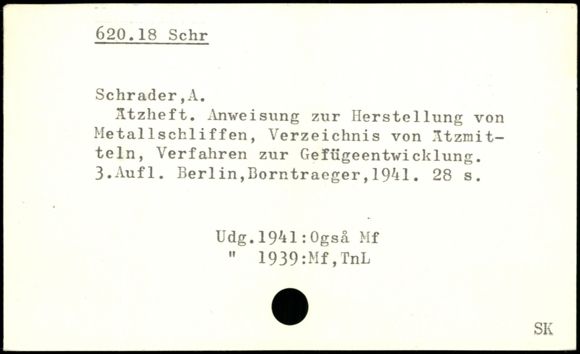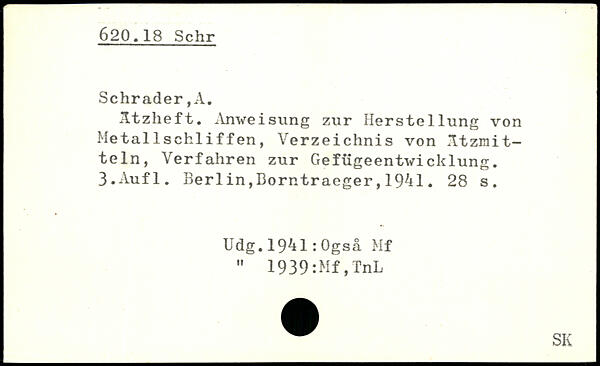 Ätzheft. Anweisung zur Herstellung von Metallschliffen, Verzeichnis von Ätzmitteln, Verfahren zur Gefügeentwicklung.