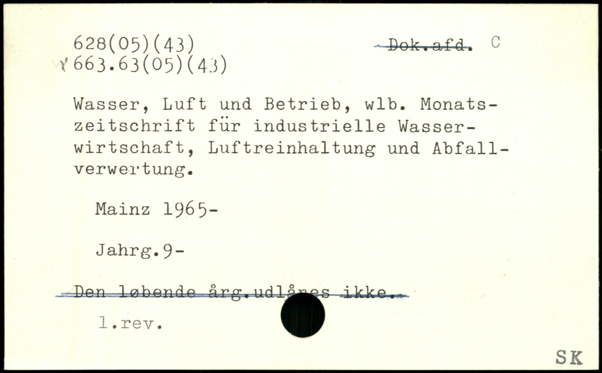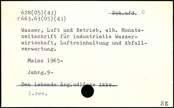 Wasser, Luft und Betrieb, wlb. Monatszeitschrift für industrielle Wasserwirtschaft, Luftreinhaltung und Abfallverwertung. Mainz 1965- Jahrg.9- -^--Jleru 1 gi-b^nde arg. .. l.rev.