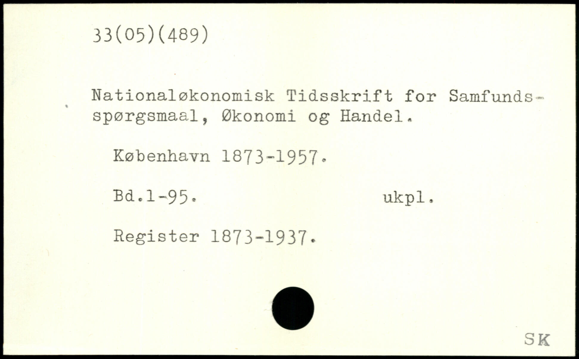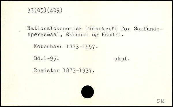 Nationaløkonomisk Tidsskrift for Samfunds-spørgsmaal, Økonomi og Handel.