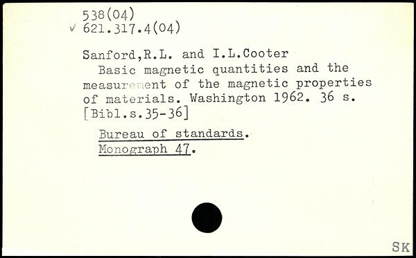 Basic magnetic quantities and the measure .ent of the magnetic properties of materials.