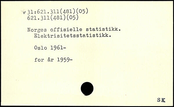 Norges offisielle statistiks. Elektrisitetsstatistikk. Oslo 1961-for år 1959-