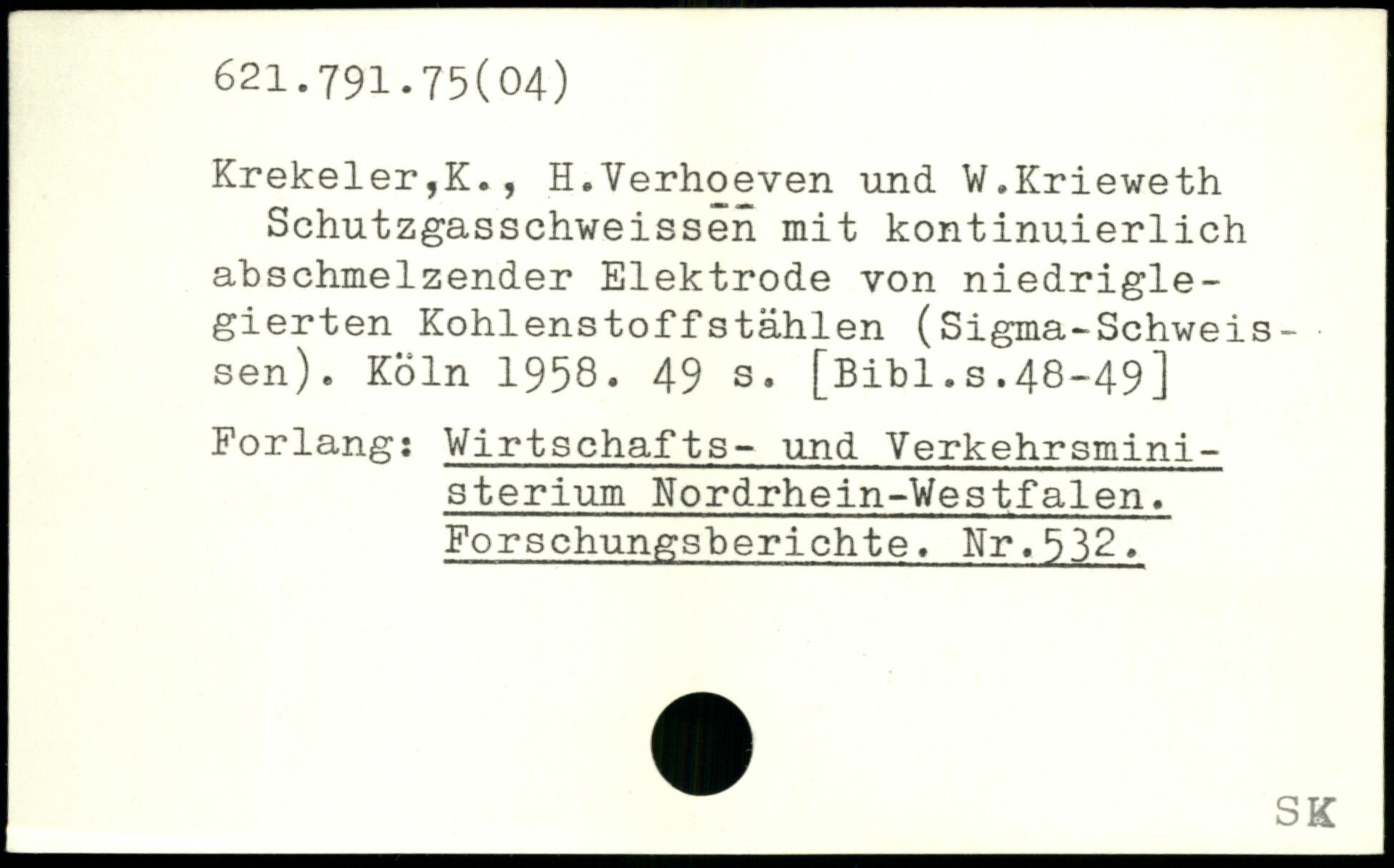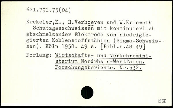 Krekeler,K., H.Verhoeven und W.Krieweth Schutzgasschweissen mit kontinuierlich abschmelzender Elektrode von niedriglegierten Kohlenstoffstählen (Sigma-Schweis -sen).