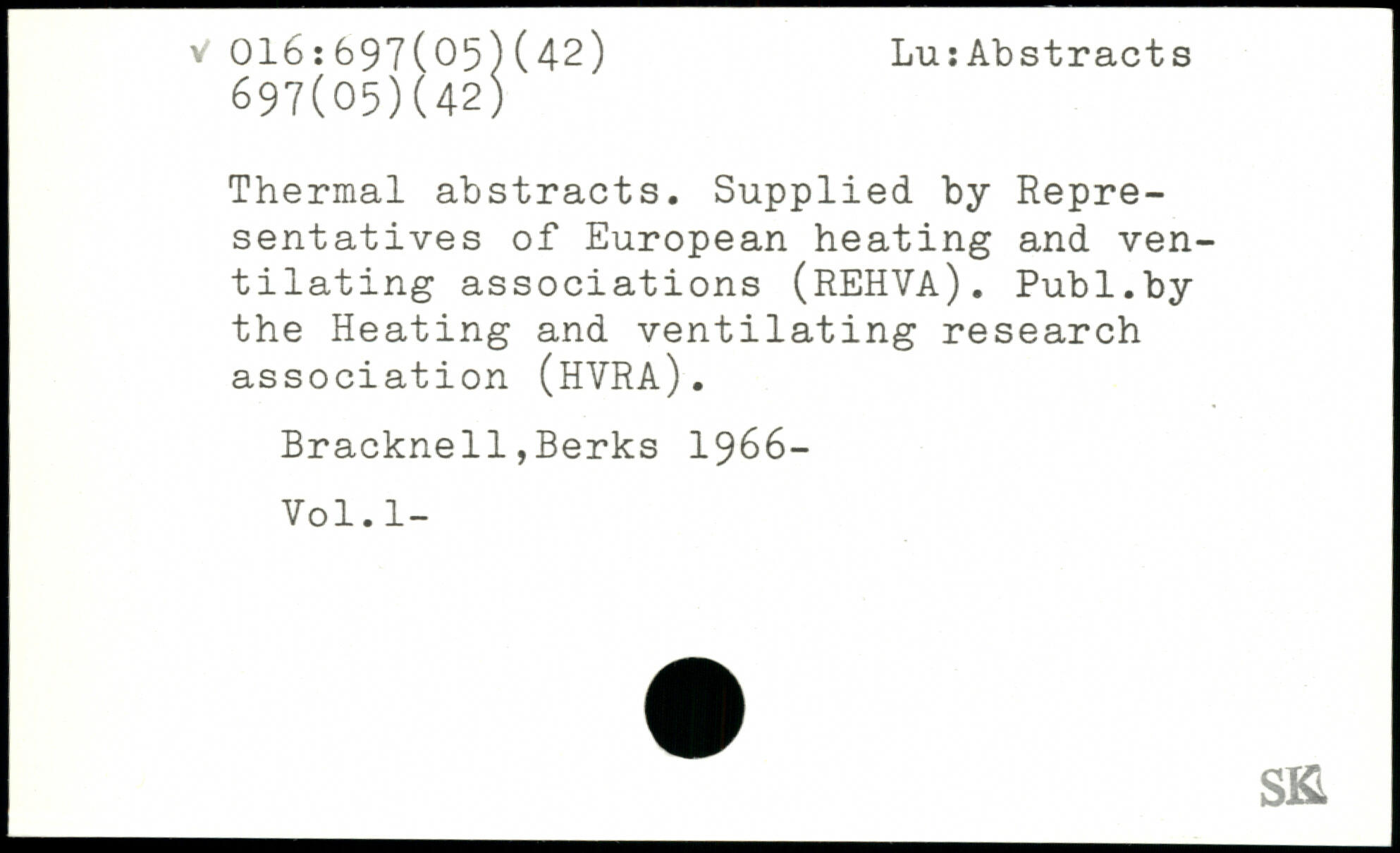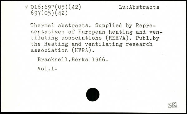 Thermal abstracts. Supplied by Representatives of European heating and ventilating associations (REHVA).