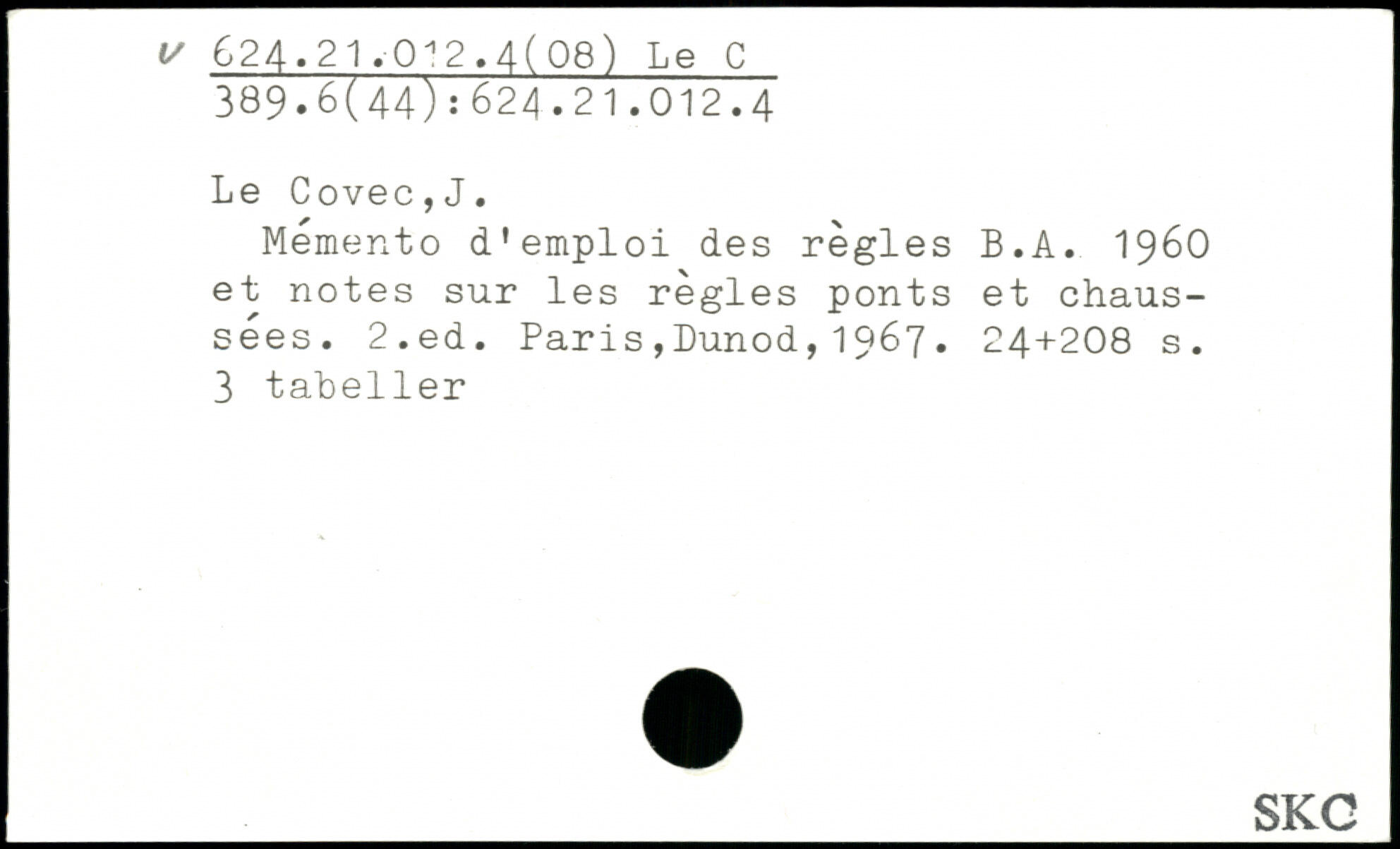 Mémento d'emploi des règles B.A. 1960 et notes sur les règles ponts et chaussées.