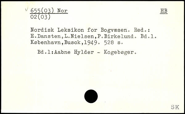 Nordisk Leksikon for Bogvæsen. Red,: E,Dansten,L0