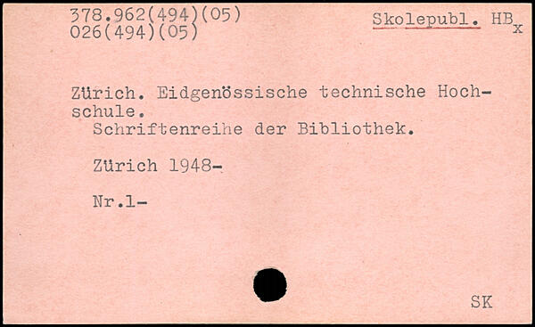 Zürich. Eidgenössische technische Hochschule. Schriftenreihe der Bibliothek. Zürich 1948-Nr.l-