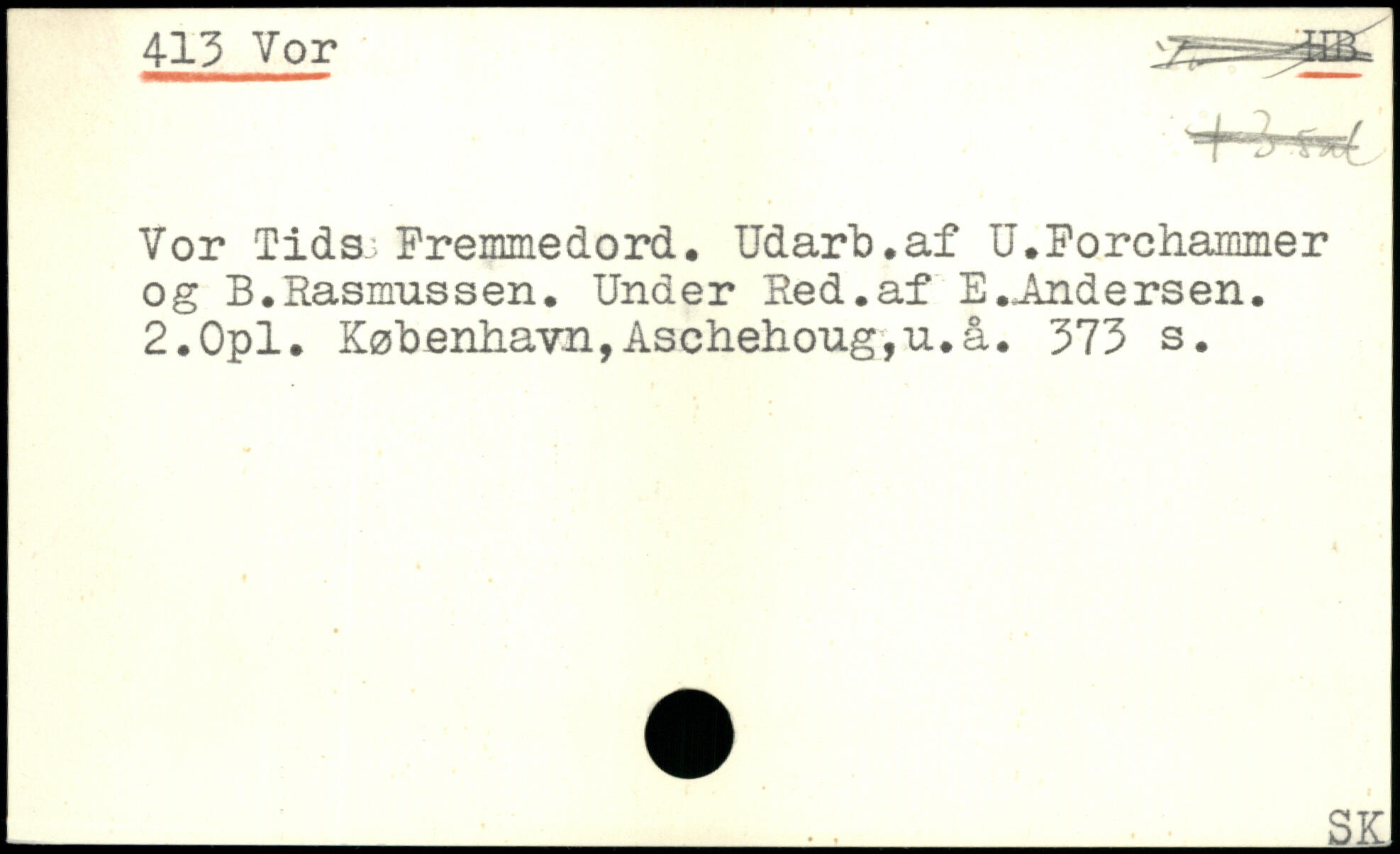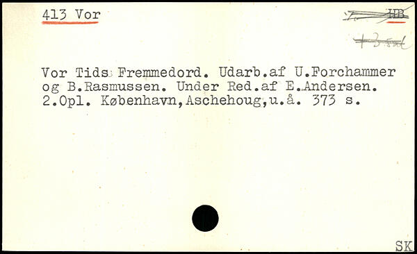 Vor Tidsj Fremmedord. Udarb.af U. For diaminer og B.Rasmussen. Under Red.af E.Andersen. 2.0pl. København, Aschehoug,xi.å.