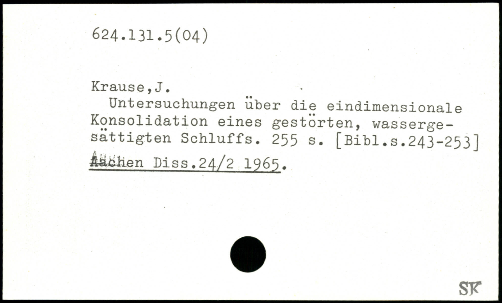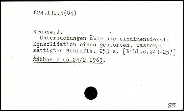 Untersuchungen über die eindimensionale Konsolidation eines gestörten, wassergesättigten Schluffs.