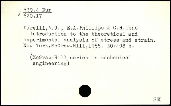 Hurelli,A.J., E.A.Ph1111ps & C.H.Tsao Introduction to the theoretical and experimental analysis of stress and strain.