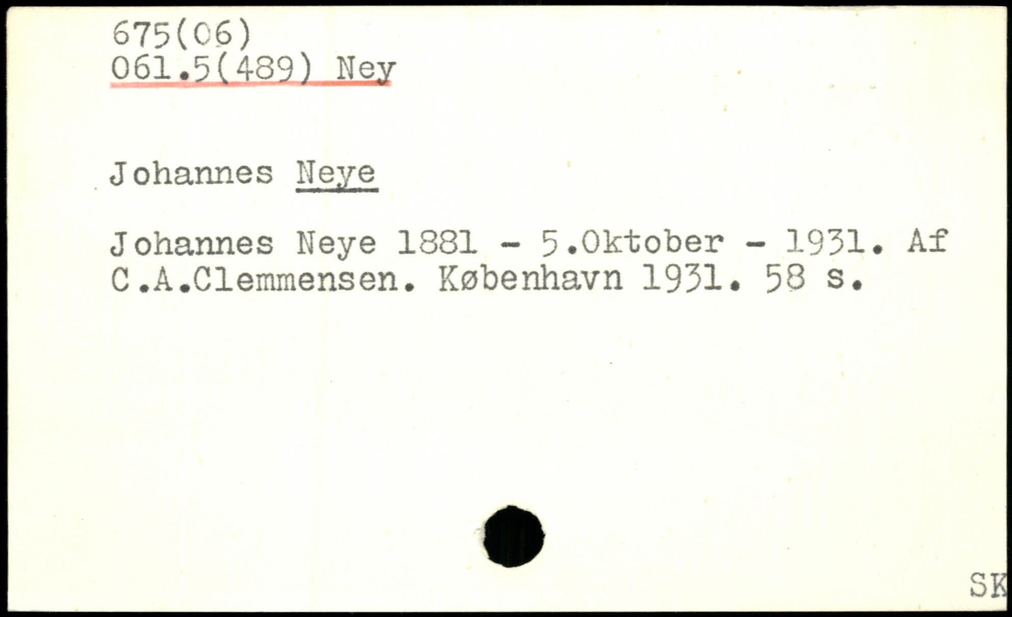 Johannes Neye 1881 - 5,Oktober - 1931, Af C.A.Clemmensen.