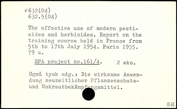 The effective use of modern pesticides and herbicides. Report on the training course held in France from 5th to 17th July 1954.
