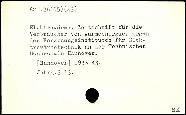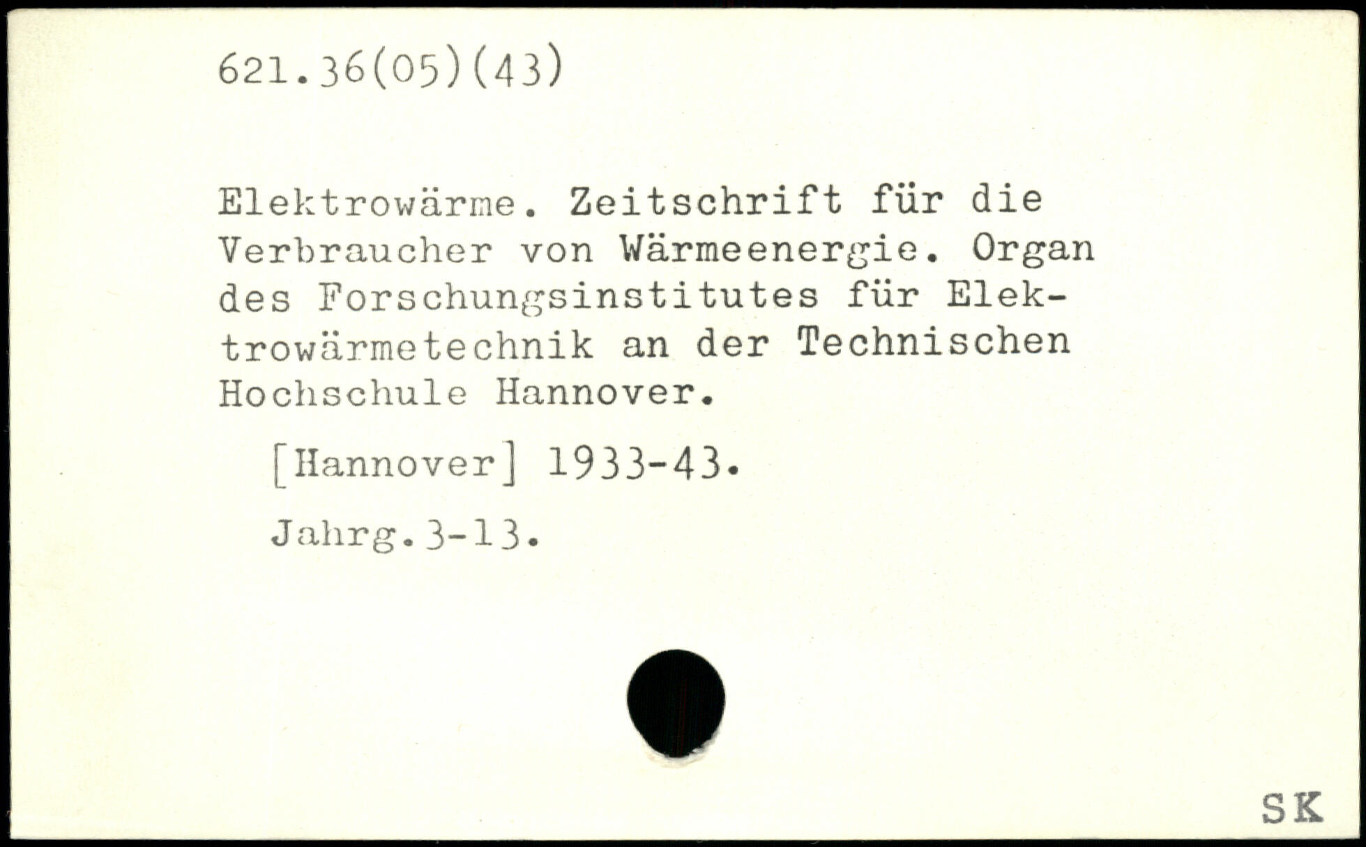 Elektrowärme. Zeitschrift für die Verbraucher von Wärmeenergie. Organ des Forschungsinstitutes für Elektrowärmetechnik an der Technischen Hochschule Hannover.