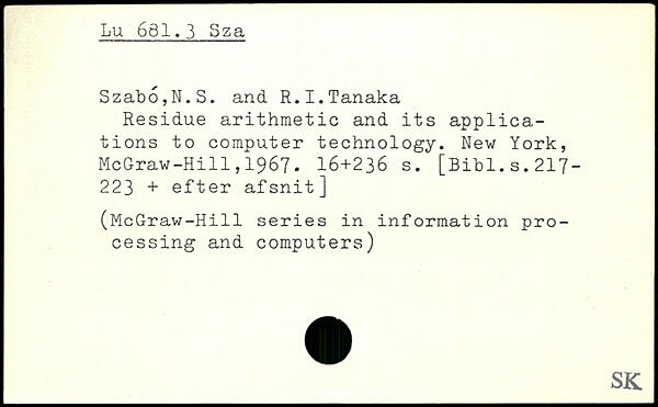 Residue arithmetic and its applications to computer technology.
