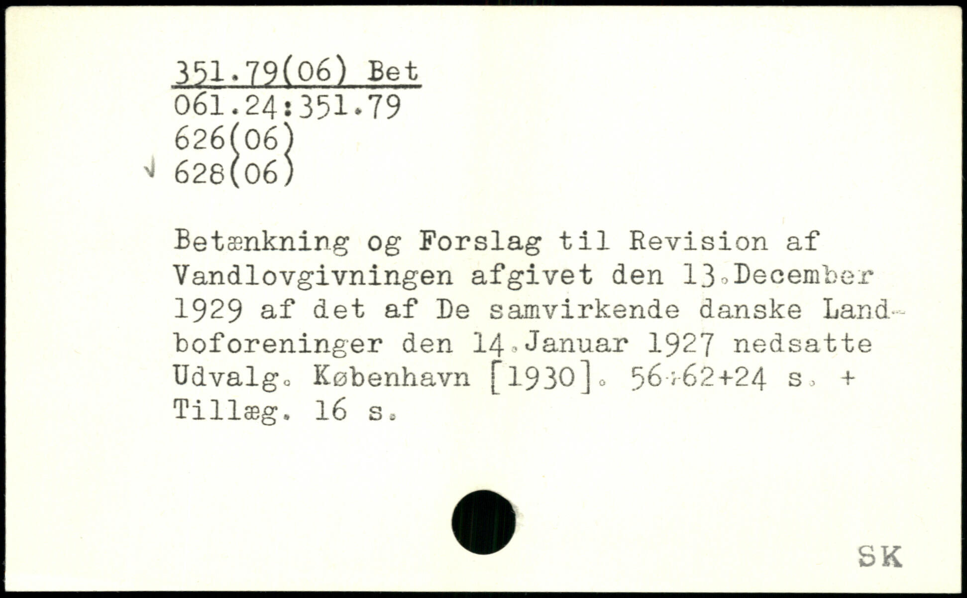 Betænkning og Forslag til Revision af Vandlovgivningen afgivet den 13oDecember 1929 af det af De samvirkende danske Land, boforeninger den 14'Januar 1927 nedsatte Udvalg