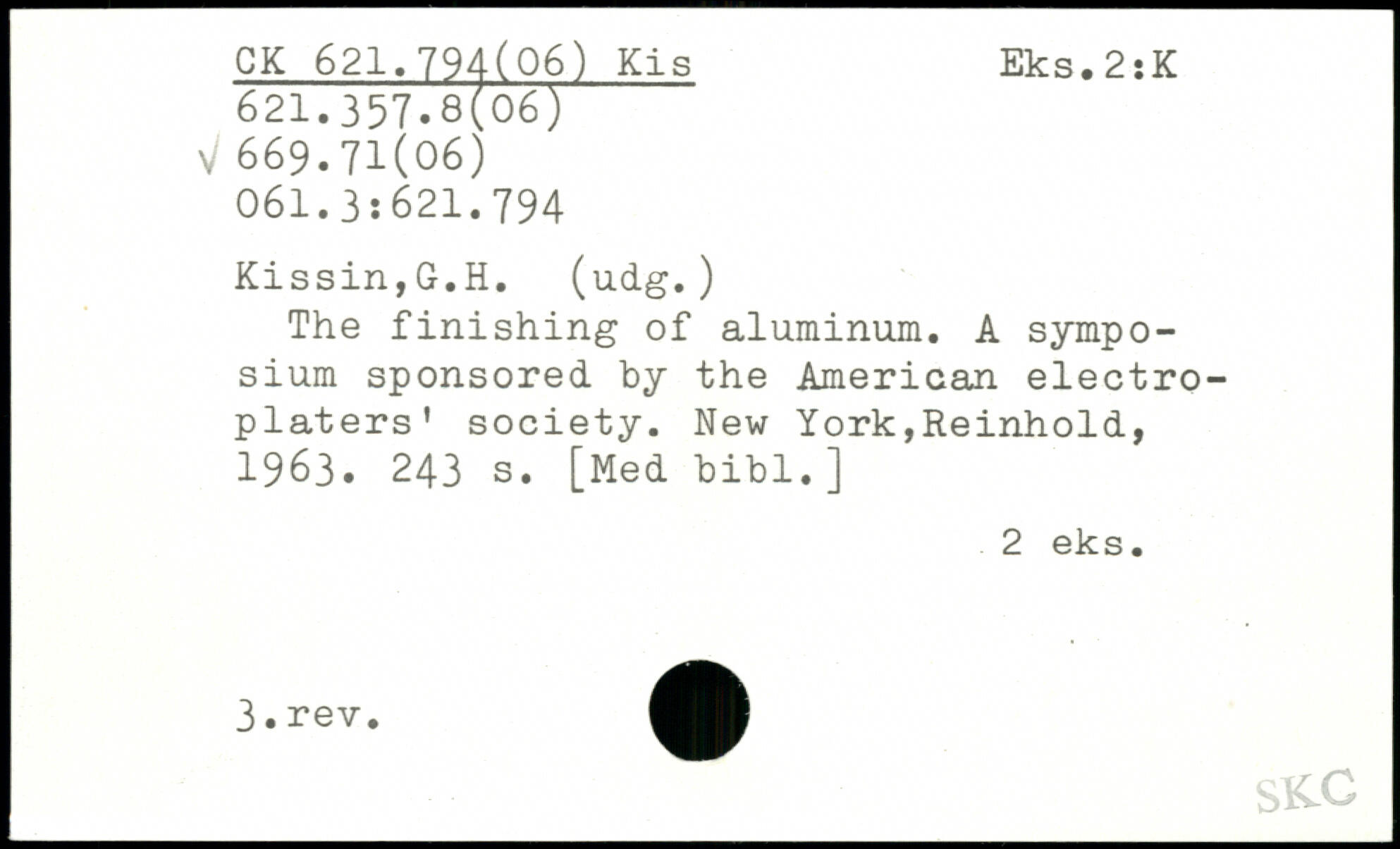 The finishing of aluminum. A symposium sponsored by the American electro-platers’ society.