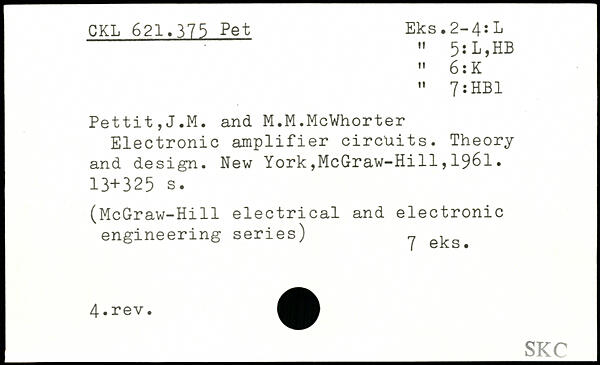 Electronic amplifier circuits. Theory and design. New York,McGraw-Hi11,1961.
