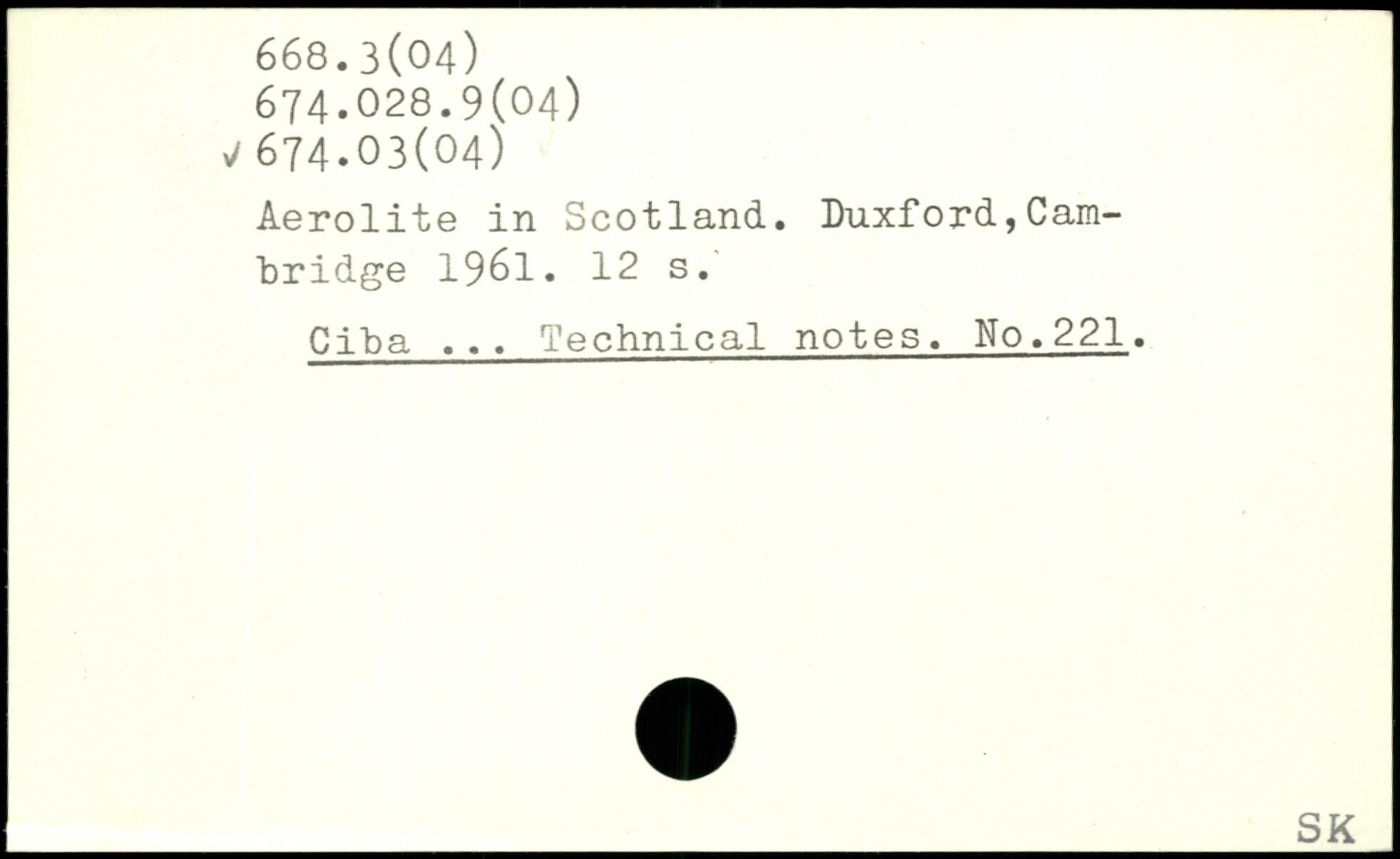 Aerolite in Scotland. Duxford