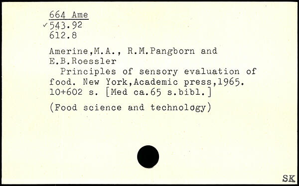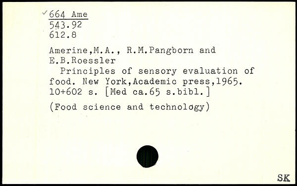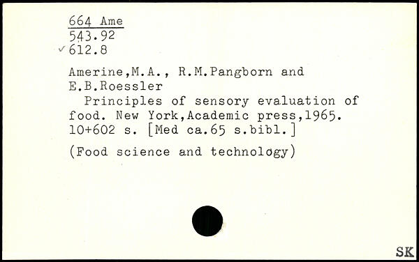 Amerine,M.A., R.M.Pangborn and E. B.Roessler Principles of sensory evaluation of food.