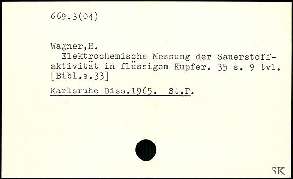 Elektrochemische Messung der Sauerstoff-aktivitat in flüssigem Kupfer.