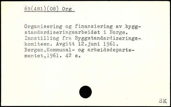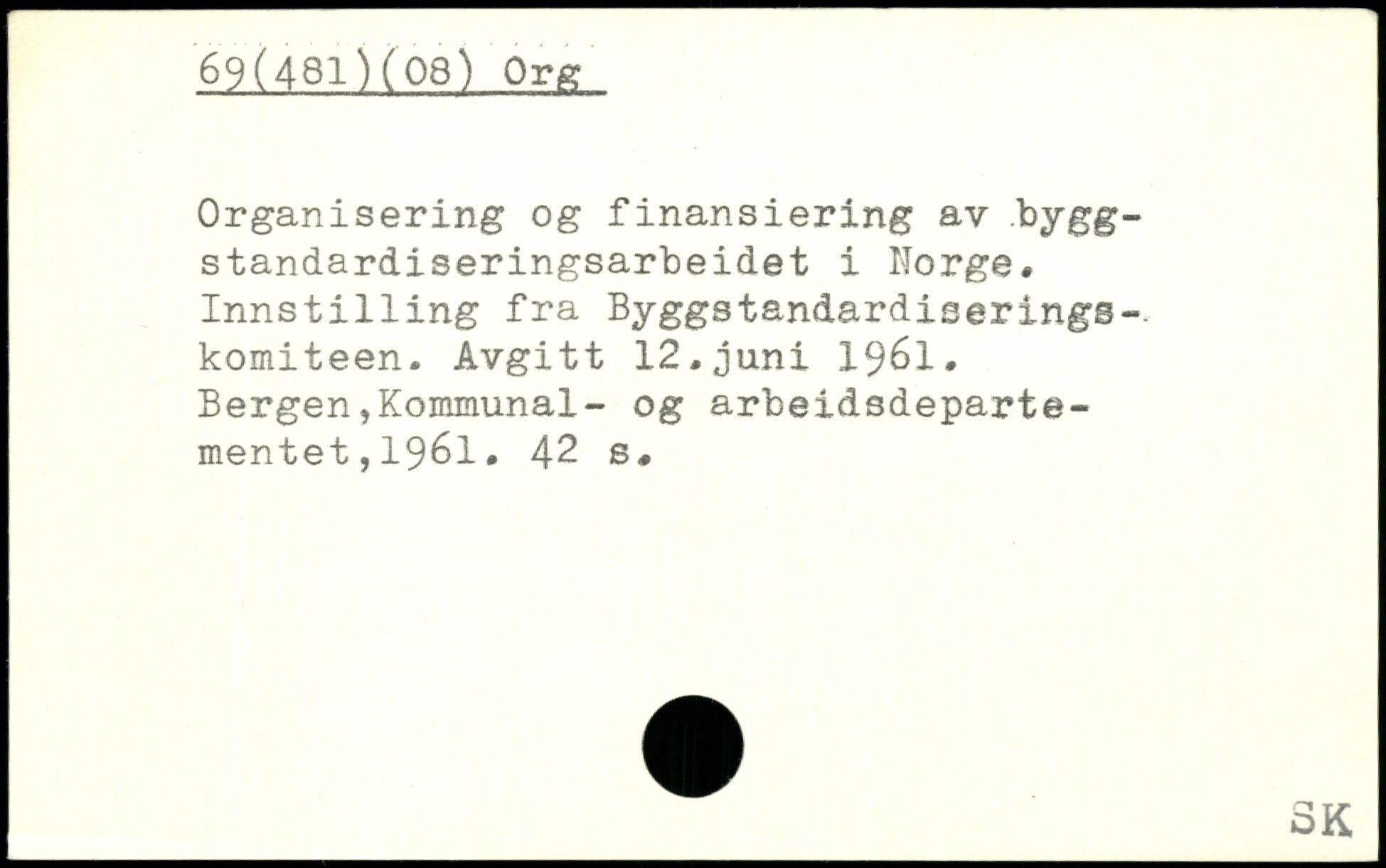 Organisering og finansiering av bygg-standardiseringsarbeidet i Norge. Innst1111ng fra Byggstandardiserings-. komiteen. Avgitt 12.juni 1961.