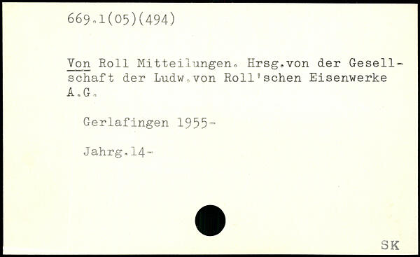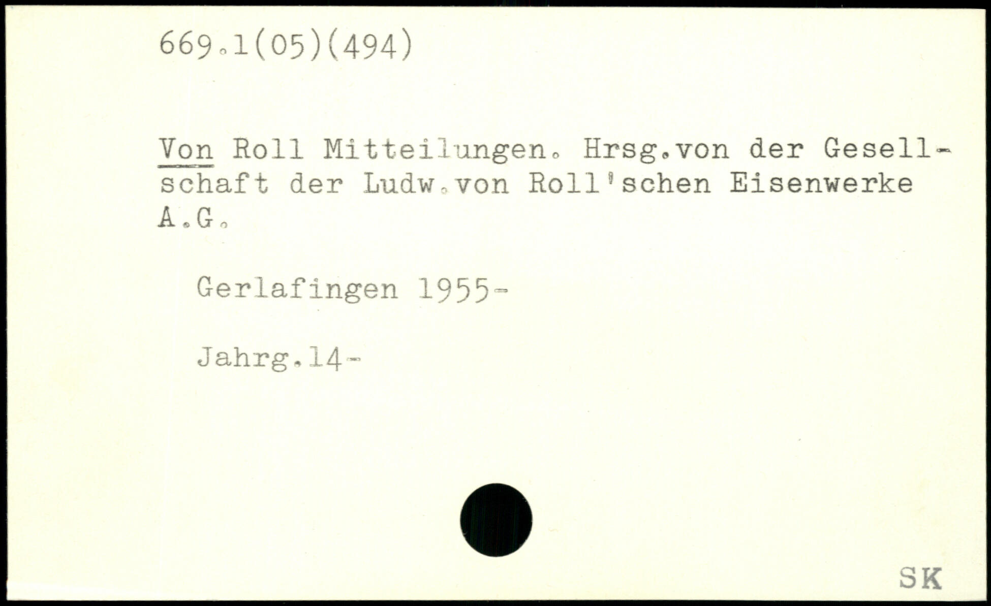 Von Roll Mitteilungen,, Hrsg.von der Gesellschaft der Ludw.von Roll.sehen Eisenwerke A.Go Gerlafingen 1955” Jahrg. 14'-