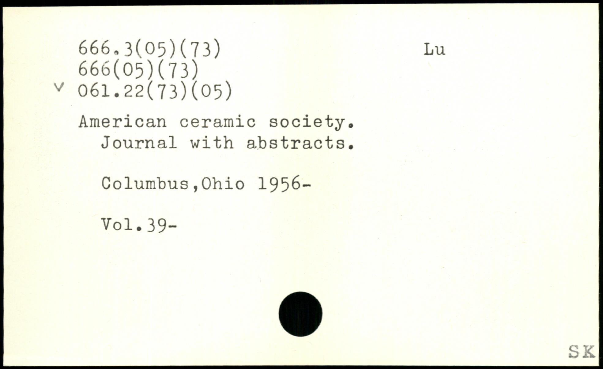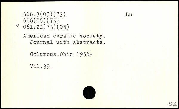 American ceramic society. Journal with abstracts. Columbus,Ohio 1956-