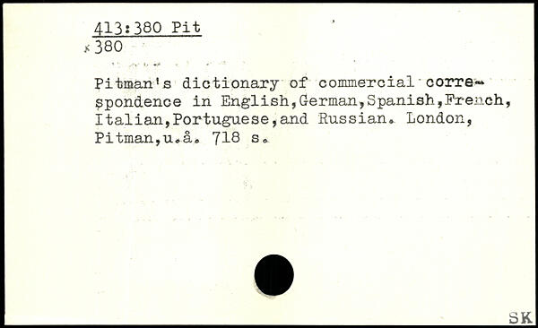 Pitman's dictionary of commercial■corre-. spondence in English,German,Spanish,French, Italian,Portuguese,and Russian. London, Pitman,u.a.