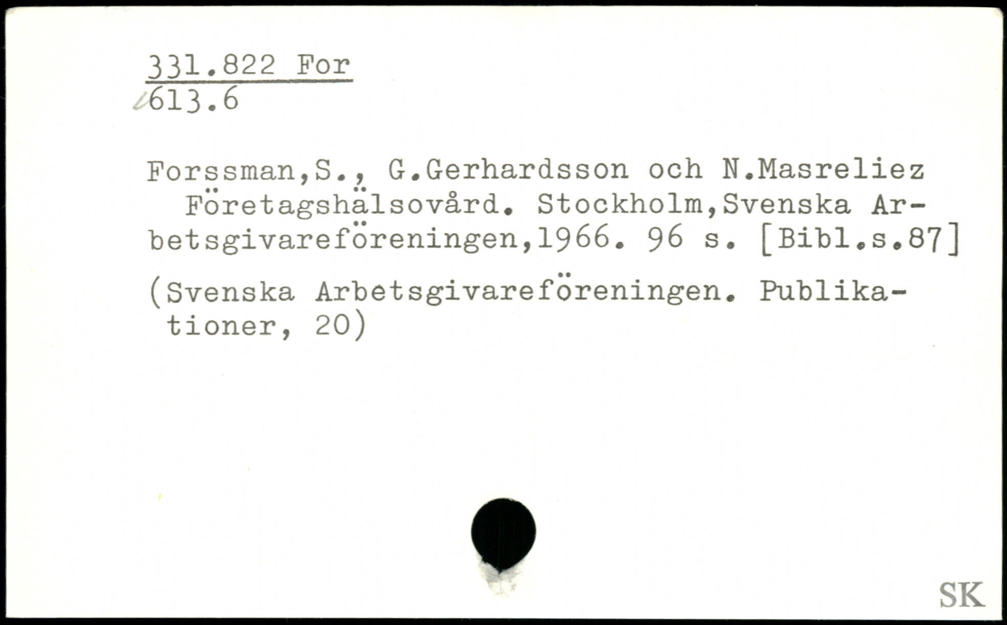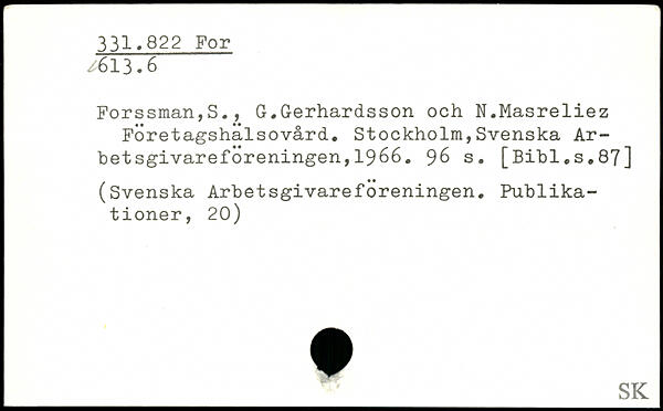 Forssman,S., G.Gerhardsson och N.Masreliez Företagshälsovård.