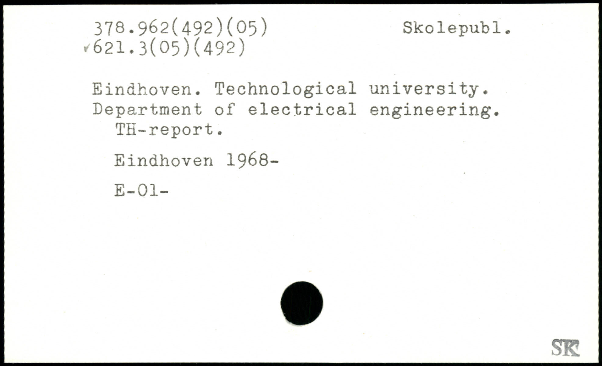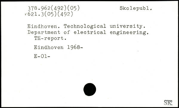 Eindhoven. Technological university. Department of electrical engineering. TH-report. Eindhoven 1968-