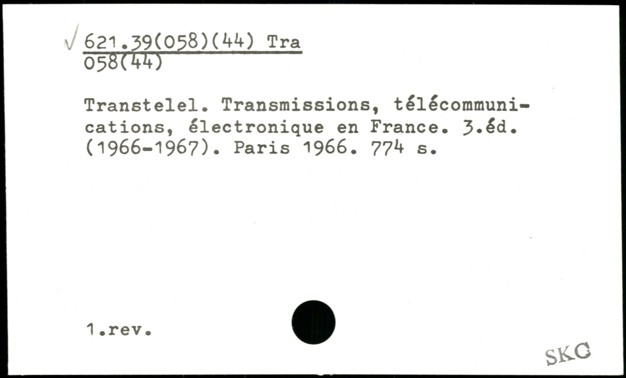 Transtelel. Transmissions, télécommunications, électronique en France. 3.éd. (1966-1967).
