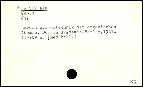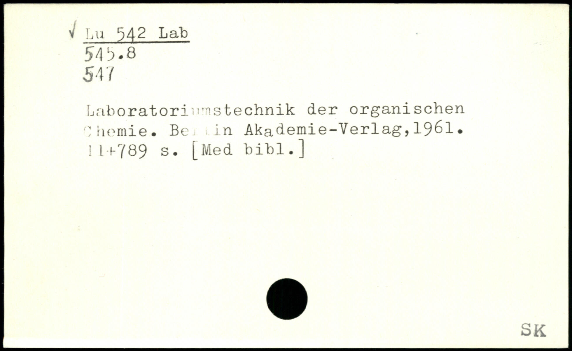 Laboratorinmstechnik der organischen Chemie. Be. ..in Akademie-Verlag, 1961. 1 1-1-
