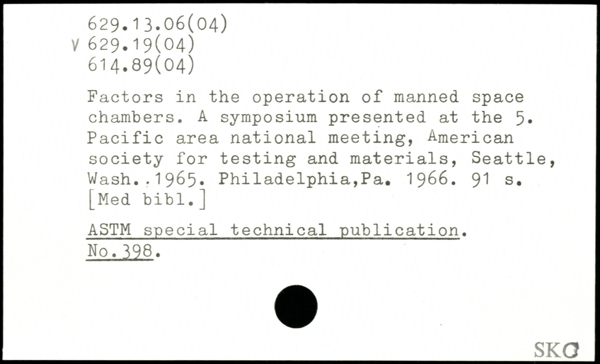 Factors in the operation of manned space chambers. A symposium presented at the 5. Pacific area national meeting, American society for testing and materials, Seattle, Wash..1965. Philadelphia,Pa. 1966.