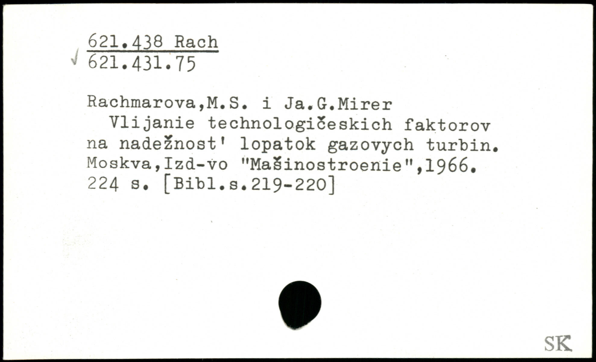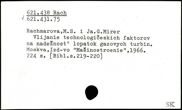 Rachmarova,M.S. i Ja.G.Mirer Vlijanie technologiceskich faktorov na nadeznost' lopatok gazovych turbin. Moskva,Izd-vo "MaSinostroenieM,1966