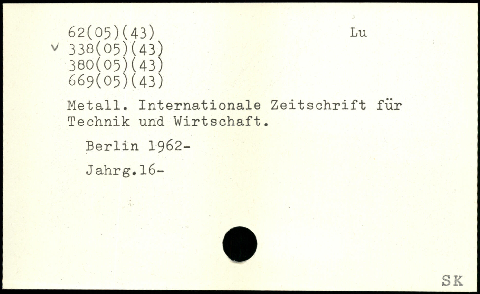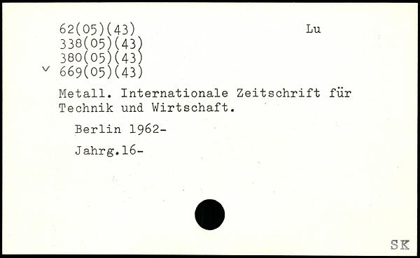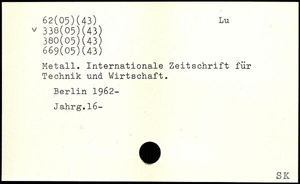 Metall. Internationale Zeitschrift für Technik und Wirtschaft.