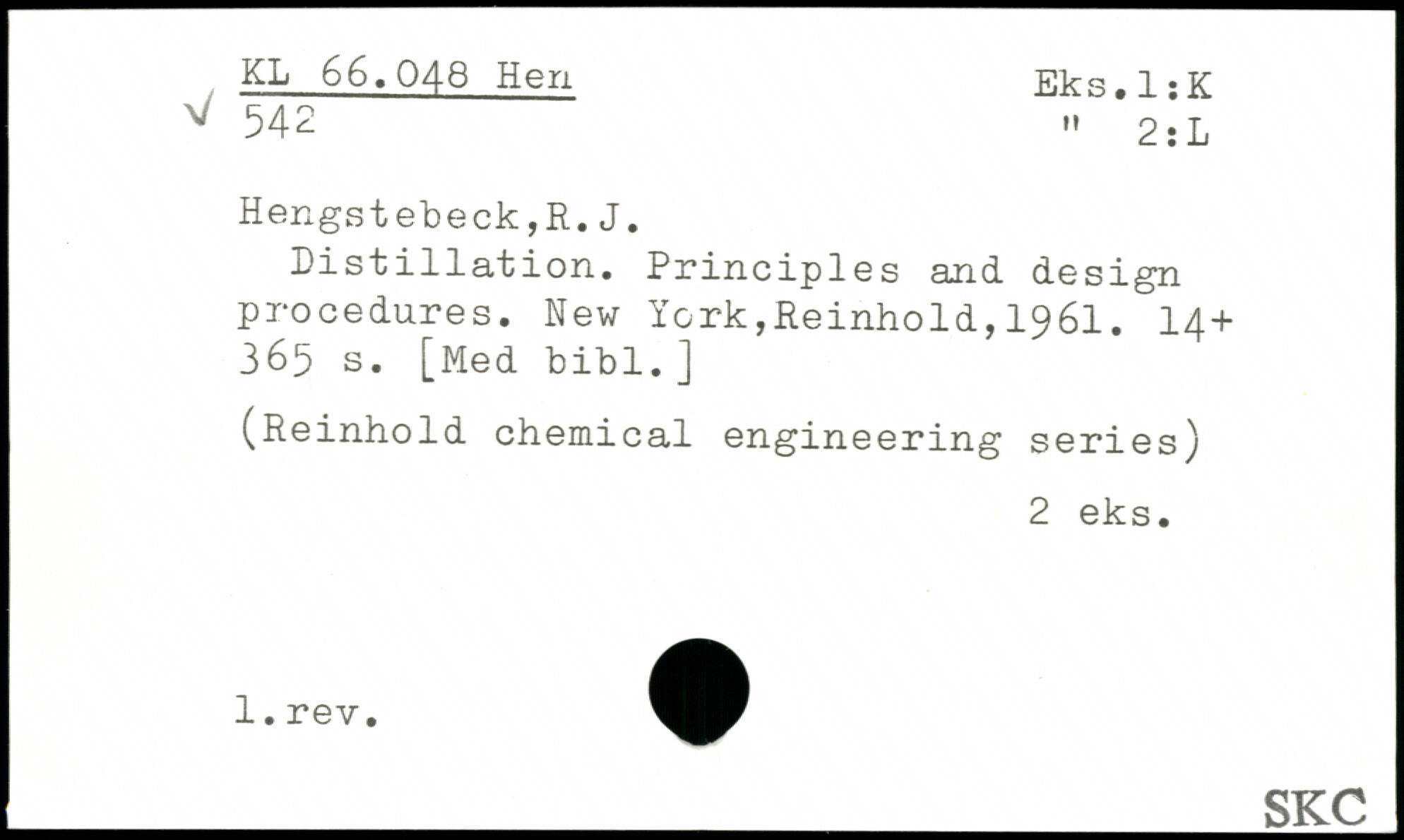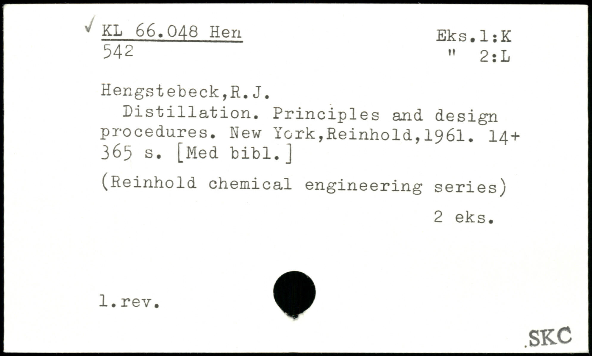 Distillation. Principles and design procedures.