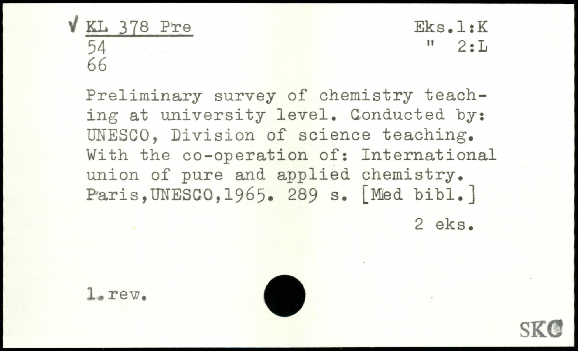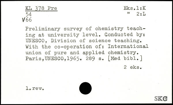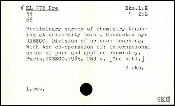 Preliminary survey of chemistry teaching at university level. Conducted, by: UNESCO, Division of science teaching. With the co-operation of: International union of pure and applied chemistry.