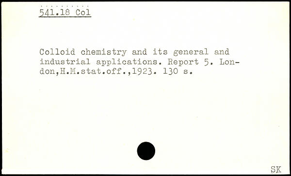 Colloid chemistry and its general and industrial applications. Report 5, London, H.M.stat.off.,1923.