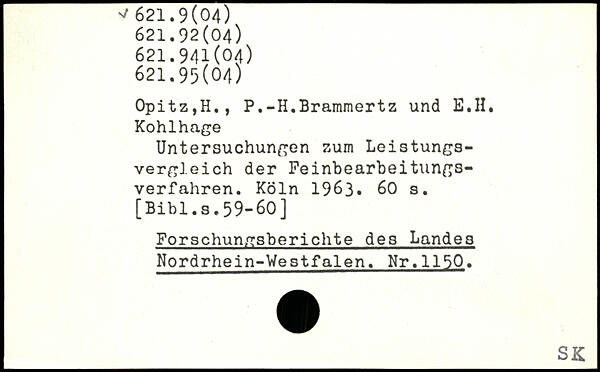 0pitz,H., P.-H.Brammertz und E.H. Kohlhage Untersuchun^en zum Loistungs-ver^leich der Feinbearbeitunfts-verfahren.
