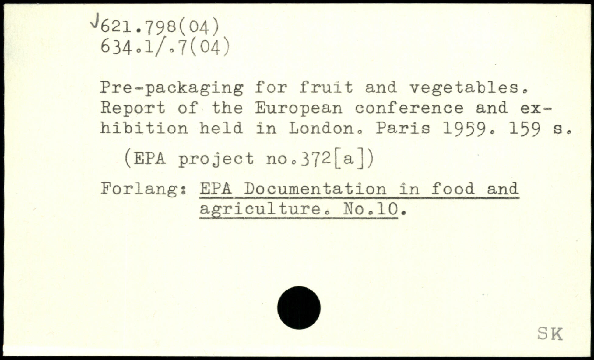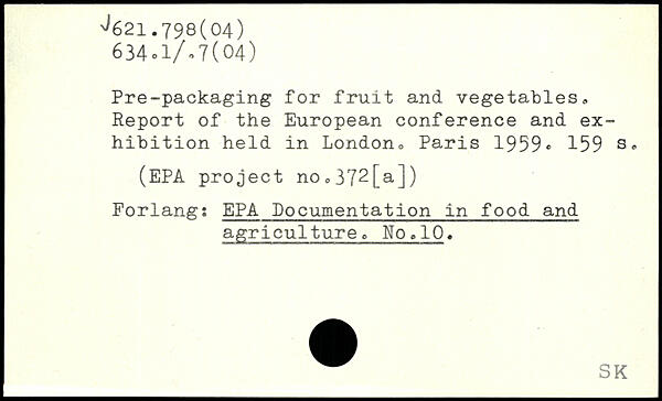 Pre-packaging for fruit and vegetables, Report of the European conference and exhibition held in London