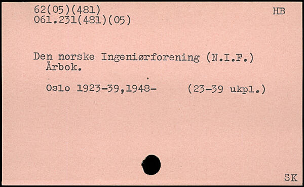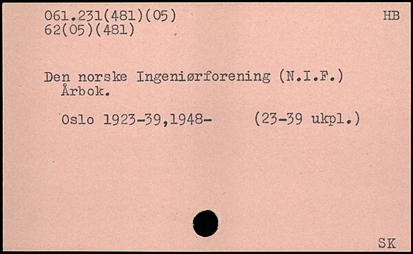 Den norske Ingeniørforening (N.I.P.) Årbok. Oslo 1923-39,1948- (23-39 ukpl.)