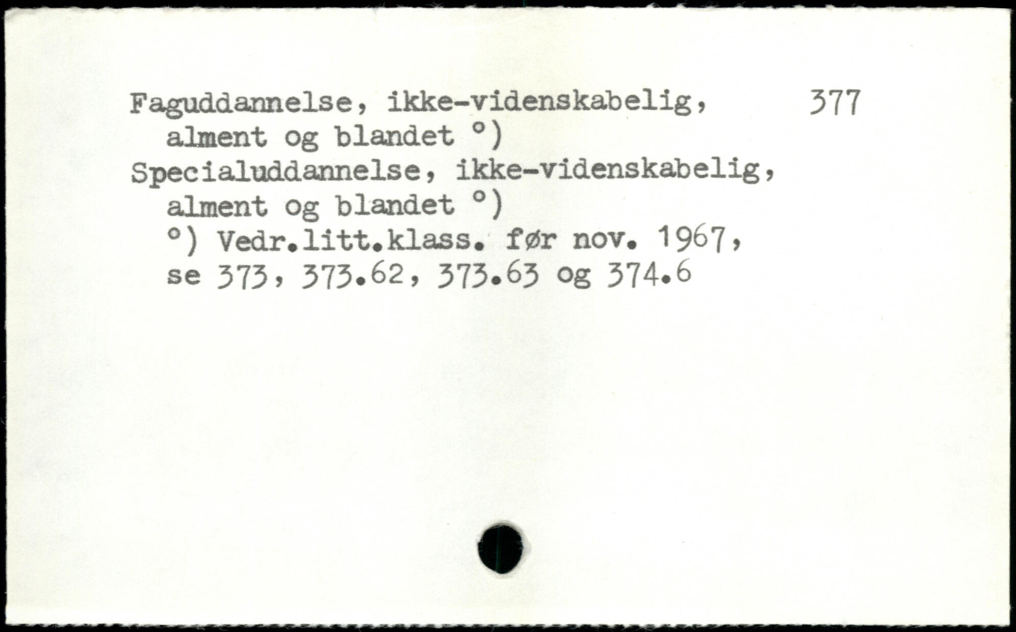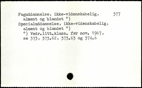 Faguddannelse, ikke-videnskabelig, 377 alment og blandet .) Specialuddannelse, ikke-videnskabelig, alment og blandet .) .) Vedr.litt.klass. før nov. 19^7, se 373 > 373.62, 373.63 og 374.6